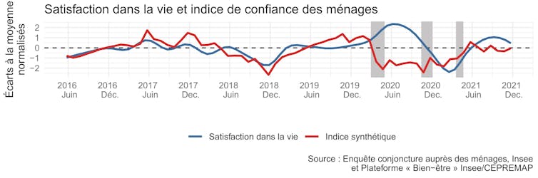 Pour les ménages, l’inflation signifie la menace d’une érosion difficilement contrôlable du coût de la vie dès lors que leurs revenus risquent de ne pas suivre. Toutefois, si le bulletin de salaire ou le bilan comptable nous informent régulièrement sur nos revenus, l’effet de l’inflation sur notre pouvoir d’achat reste difficile à mesurer, d’où le poids non négligeable de la subjectivité dans l’évaluation que les Français font de leur situation d’ensemble. Les anticipations de hausse des prix et d’évolution du pouvoir d’achat pèsent néanmoins dans la satisfaction de vie. La conjoncture sera donc un facteur déterminant de l’évolution du bien-être des Français dans les prochains mois et années.