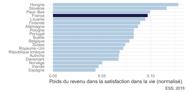 Poids du revenu dans la satisfaction dans la vie (normalisé)